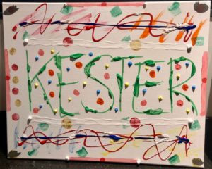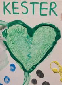 Vandaag schilderden Martine, Esmée en Vivienne hun verdriet en liefde voor Kester. Gewoon, aan de tafel in de woonkamer. Voelt goed. Frans werkte ondertussen aan een nieuw digitaal K-project dat begon met een ‘h’.