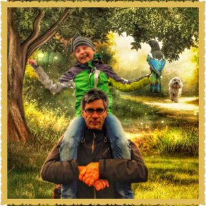 Heel af en toe lukt het om daaraan toch een beetje te ontsnappen. Bijvoorbeeld als een half vergeten filmpje of foto met Kester opduikt. Maar soms lukt het ook om er een volledig nieuwe “herinnering” bij te laten komen. Zo maakte een goede vriendin onlangs, op basis van bestaande foto’s, nieuwe situaties waarin Kester prominent aanwezig is: Kester in een feeërieke* wereld. Wat kun je daar blij van worden.