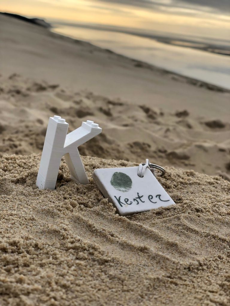 Hieronder een foto van Kester die het duin beklimt. Maar het allerleukste: naar beneden stuiven. Deze keer deden we dat ook, en riepen keihard Kester zijn naam.