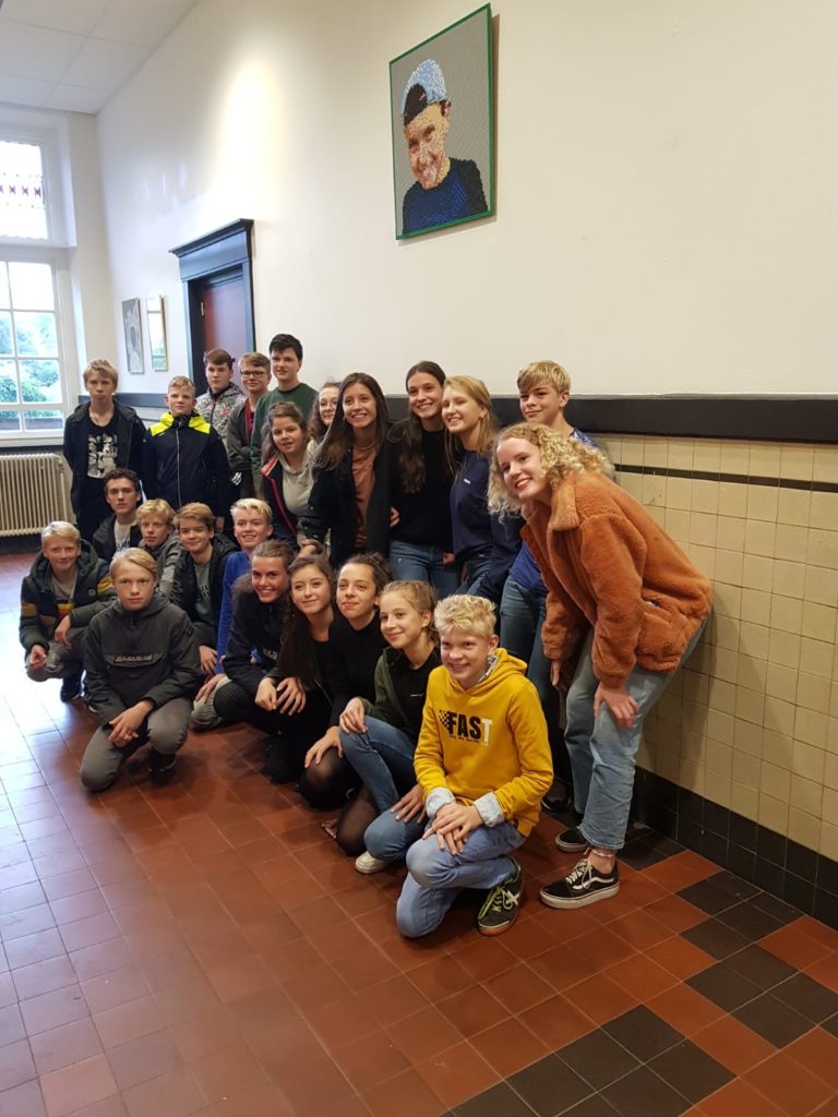 Vandaag was het eindelijk zo ver, het Lego-portret waar Esmée samen met klasgenootjes van Kester in juli aan werkte, hangt op de school van Kester.