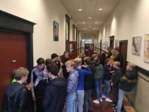 We staan hier tegenover het lokaal van Janneke, Kester zijn mentor in de eerste klas. Kester had het geluk dat jij, Janneke, zijn mentor was. Je hielp Kester over zijn schroom heen en toonde begrip voor zijn situatie. En je zorgde ervoor dat Kester de aandacht kreeg die hij verdiende. Niet teveel, en niet te weinig, maar precies genoeg. Kortom, wat ons betreft is dit de meest geschikte plek hier op school voor een herinnering aan Kester.