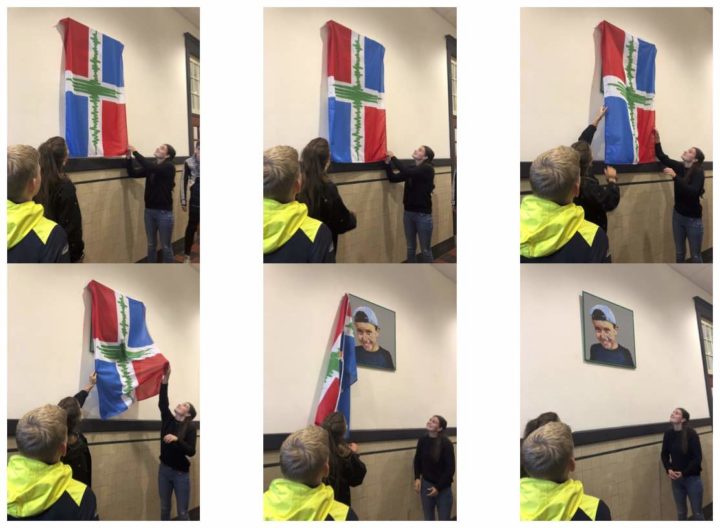 Bij de onthulling van het portret waren klasgenoten, vrienden, docenten en familie aanwezig.Kester is weer op school, in Lego-portretvorm.