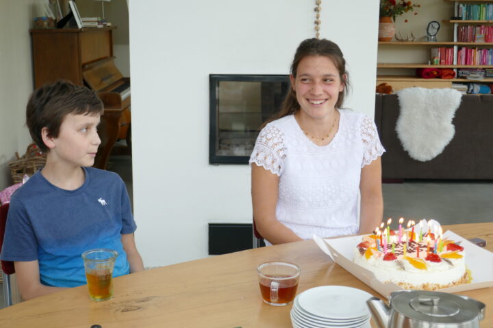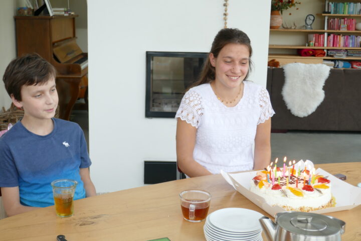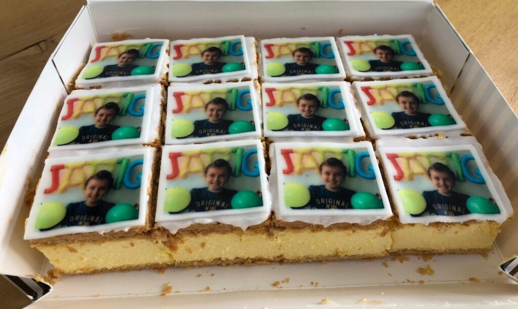 16 mei was de tweede verjaardag van Esmée zonder haar broertje: weer zo’n extra moeilijke dag. Wat doe je dan? Vivienne kwam op het briljante idee om gebakjes te bestellen met een foto van Kester erop. En zo kwamen er 12 kleine tompoucen met een toepasselijke foto van Kester (door Esmée inmiddels kespoucjes genoemd). En zo was hij er toch weer een beetje bij. Het blijft natuurlijk een slap aftreksel van de echte Kester. Die had vast en zeker dikke lol gemaakt met Esmée.