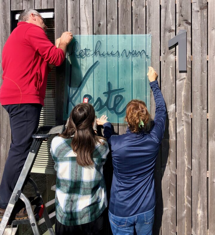 Al een hele tijd werd er aan gewerkt, een naam op ons huis in Kester zijn eigen handschrift! Vandaag hingen we deze op.